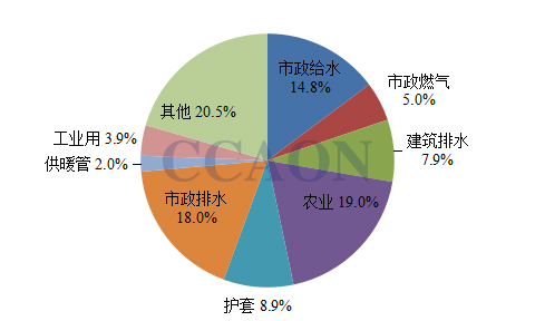 中國塑料管道主要應用領域占比